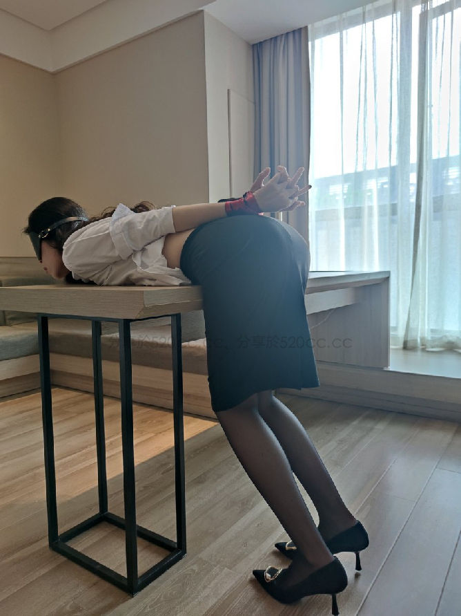「無恥甚麼 ?! 我是西門慶,你是潘金蓮呀!」我雙手享受,嘴巴上不斷用淫詞穢語挑逗羞辱、激起她淫蕩的一面。果然,她發出了一陣陣的呻吟聲。我知道她已經棄械投降了,用嘴巴解開套裝的拉鍊,拿出隔間的鑰匙打開內門,把她抱進去。把她平放在大桌上後,將房門反鎖,回頭看她,已經不掙扎,安靜躺著不動,我不禁感到好笑,剛剛她還裝的像貞節烈女一般。